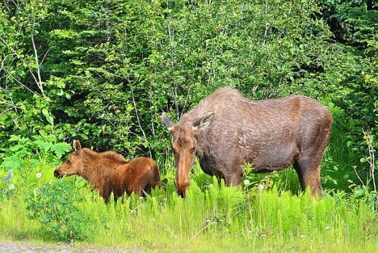 아기 무스와 무스 아주머니가깝게 다가가도 무스 아주머니는 꿈쩍도 안 하십니다.다만, 아기 무스가 놀랄 따름입니다.