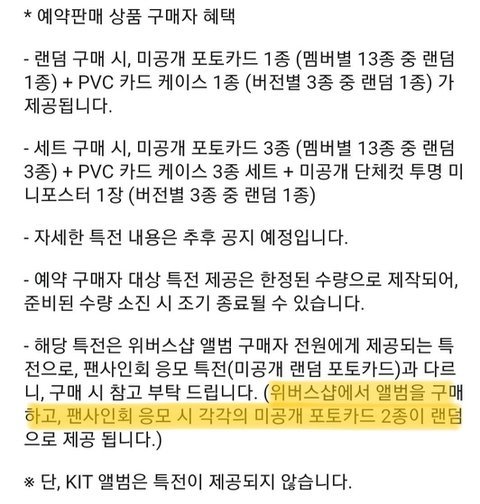 예사와 아래버스 두개만 비교하면 반드시 아래버스에서만 사야하는이유가 생겼어 예사 ㄴ미공포 위버스 ㄴ(예사와 톡같은) 미공포 ㄴ위버스 미공포 ㄴ카드케이스 ㄴ미니포스터