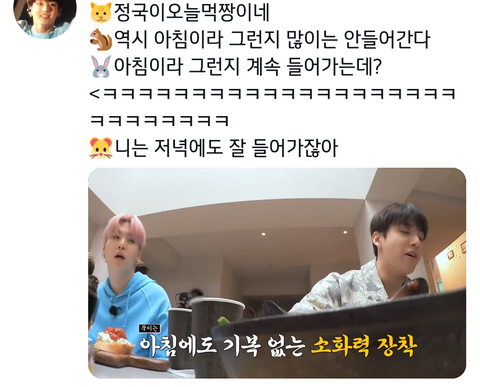 정국이 오늘 먹짱이네?