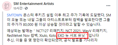 엑소 뉴 서브 유닛 나온다는거 지금봄