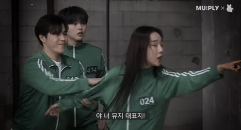 이달의소녀 츄 크래비티 송형준 몬스타엑스 주헌 뮤지광컴퍼니라는 예능 찍는데 이번 편 오겜 패러디한건가 봄 예고만 봐도 조카 웃김