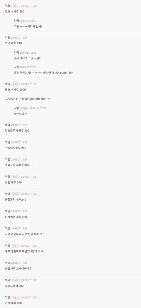 익명으로 밝힌 여성들의 직업별 월급
