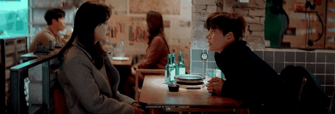 만취한 틈을 타서 멀리서 지켜보던 여주가 앞에 앉음