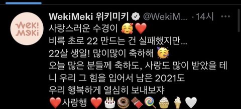 수경이 생일이라고 편지 트윗에 쓰는거 진짜 감동
