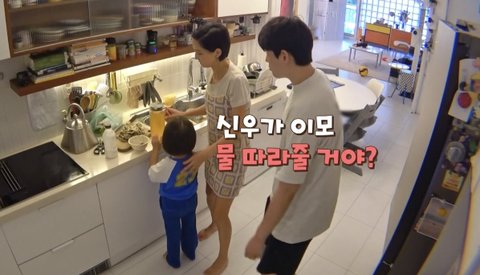 신우가 물 따라 준다니까