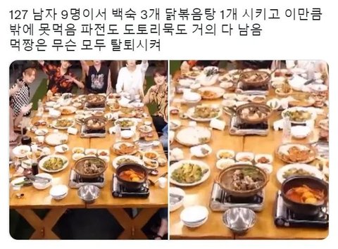 엔시티는 둘이서 라면 2봉지도 다 못 먹고, 7명이서 비빔면 5봉지가 너무 많다고 하는데 세븐틴은 평소에도 곰솥에 20인분은 기본으로 끓여 먹는대ㅋㅋㅋㅋㅋㅋㅋㅋㅋㅋㅋㅋㅋ 두팀 다 신기할 뿐...