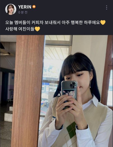 '멤버들이 커피차 보내줬어요!' 하고 인스타 라이브도 키고