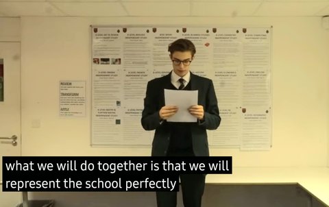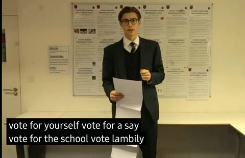 중간에 다른 후보들 연설 언급이 살짝 있는데 식스폼 센터에 전자렌지 놓겠다 뭐하겠다 등이 있었지만 그보다 중요한 건 여러분의 의견을 수용하는 것이다 한 사람의 빛나는 아이디어보다 900명 넘는 다양한 이들의 의견이 우리에겐 더 소중하다 (와 감동ㅠ) 지금의 복잡하고 명쾌하지 않은 건의 시스템을 다 뜯어 고치겠다 모든