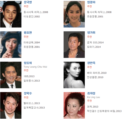 장국영, 임청하, 왕조현, 양가위, 양조위, 장만옥, 장학우, 유가령