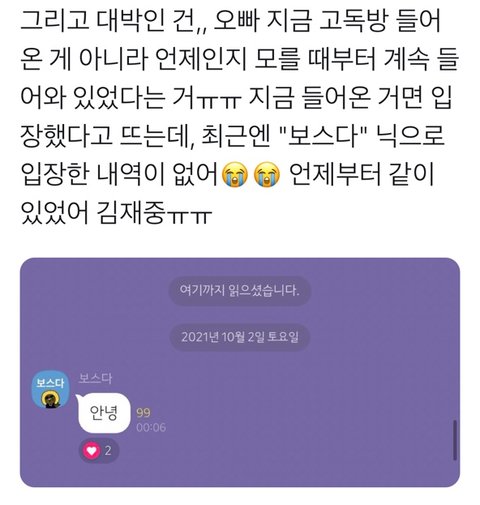 2021년 어느날 고독방에 출몰한 김재중