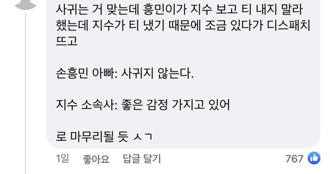 손흥민이랑 엮이는걸 싫어하는건 꼭 외모때문이 아니라 그동안 열애설 났을때마다 회피하고 상대방만 이상하게 만들었던적이 한두번이 아니었기때문임ㅋㅋㅋㅋㅋㅋㅋ 막말로 손흥민 같은 월클을 얼굴 하나 때문에 별로라고 하는거겠냐? 걸데 민아랑 손잡고 먹여주고 꽃다발 선물하는 사진까지 찍혀놓고 사귀는거 아니라고 회피하고 심지어는 이모까지 나서서 민아 이상한 사람만들고 착각하지 말라는식으로 저격까지 했는데 팬들입장에서 그런 사람이랑 엮이는걸 좋아하겠음? 남초새끼들은 뭣도 모르고 손흥민이 아깝다 ㅇㅈㄹ떠는데 여자아이돌인 지수의 팬들 입장에서는 당연히 걱정될수밖에 없는부분임