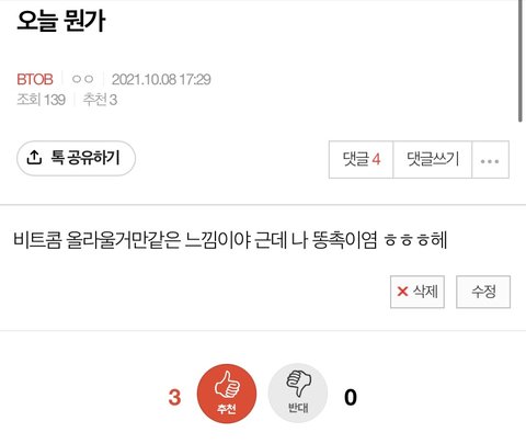 지금 봤는데 뭐야 진따 비트콤이 나와버렸ㄴㅔ..? 그럼 이제부터 나는 안똥촉인걸루 ^_^