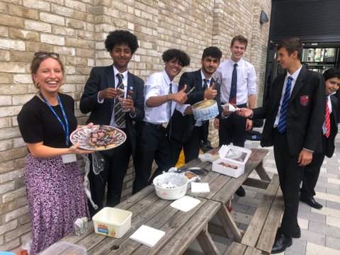위에 에드랑 또 다른 학생회 친구들과 찍은 건 9월이고 아래 쿠키만 나온게 오늘 사진인듯 오늘 쿠키랑 케이크 팔아서 30만원 넘게 모았대 나티 옆 친구는 아까 헤드보이 후보 연설에서 봐서 이름 알았음 에이먼이라는 친구임 공약으로 식스폼 센터에 전자렌지와 자판기 설치 얘기한 친구ㅋ 그 옆에 11학년 찰리한테 케이크 주는 학생은 기독교부 임원인데 헤드보이팀 명단 아무리 봐도 이름 해독 불가 벌써 노안인가봐ㅠㅠㅠ 암튼 난 나티가 그냥 기운이 좋음 부드럽고 섬세하다고 할까 음식을 대하는 태도도 진지하고 바른 학생같음 에드는 그냥 곰돌이 같고 듬직하고 항상 웃으니까 좋음ㅋㅋㅋ 다른 애들 옆에 에드만 있으면 갑자기 로비 윌리엄스의 캔디 흘러 나오고 하이틴 드라마 시작되는 느낌