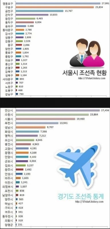 각 지역의 조선족 숫자래