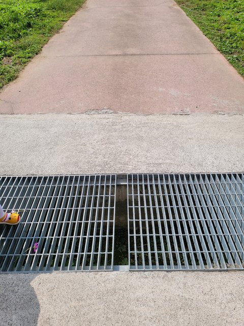 이것좀 봐요 솔직히 사람이 걸어갈때는 무심코 걸어가잖아요 누가 배수로 한가운데 틈이 벌어져있다고 생각이나 하겠어요 그래서 제 딸도 걸어가다가 이 틈사이로 발이 빠졌죠 무릎까지 빠졌어요 조금만 더 벌어졌다면 다리 전체가 빠졌겠죠
