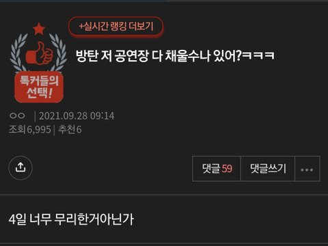 소파이 스타디움 7만석 4일치를 3일간 전석 매진시킨거임ㅋㅋㅋㅋㅋ