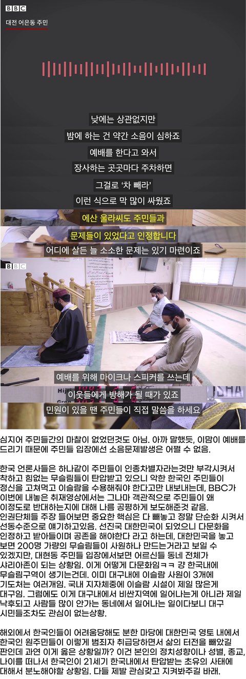 BBC에서 취재해감 우리 집앞에 이슬람사원이 들어선다면 어떨거 같아?