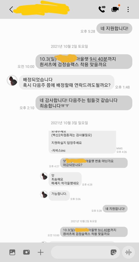 ✏ : 제 입장에서는 배정받았다고만 하고 (알바몬에도) 단톡방에 초대받는 절차가 있다고는 안쓰여있었거든요.