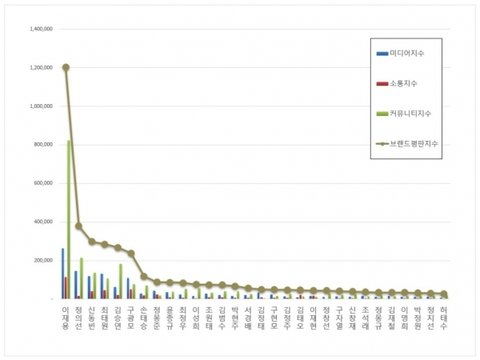 1위, 삼성 이재용 브랜드는 미디어지수 262,880 소통지수 115,448 커뮤니티지수 824,070이 되면서 브랜드평판지수 1,202,398로 분석되었다. 지난 9월 브랜드평판지수 1,155,492와 비교하면 4.06% 상승했다.