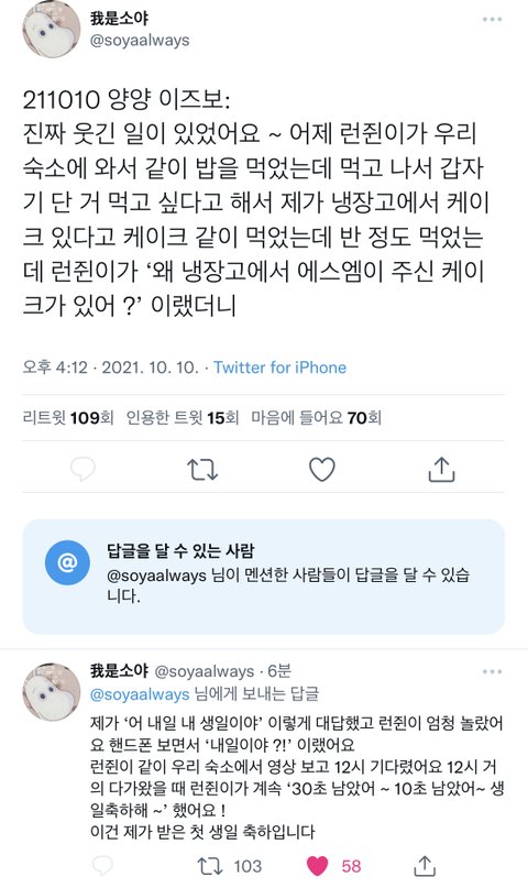 런진이 타유닛숙소 갔다 생축해주고 왔나바ㅋㅋㅋ