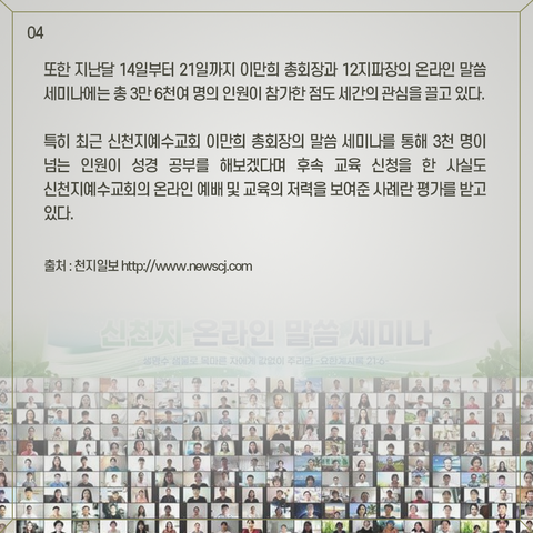 신천지, 비대면 전환1년반,,,10만명 온라인 수강중