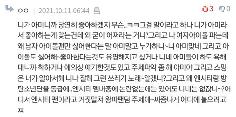 아이돌도 싫어해~그런 쓰레기 노래~ 알겠니? 왜 ㅇㅅㅌ랑 방탄을 동급에...