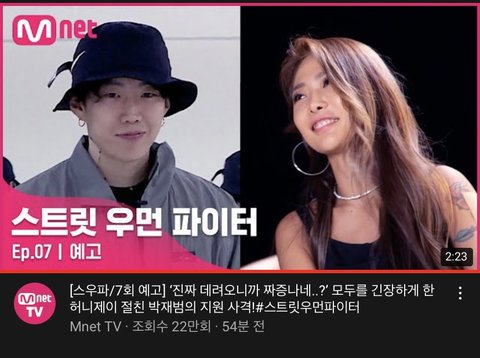 근데 솔직히 박재범 부른 수많은 이유 중 하나가 조회수 때문인건 맞잖아… 원트 훅 잡던 댓글 중에 연예인으로 조회수 뽑는다고 잡던 것도 있던데 그런 이유로 같이 잡는 건 안될 이유는 없지 그냥 무작정 쉴드 치는 게 어이없어서 댓글 남김 스우파 화이팅 8크루 다 응원함