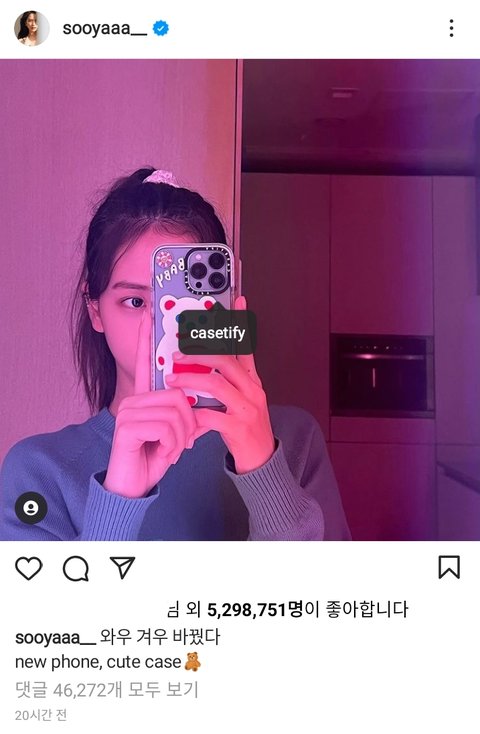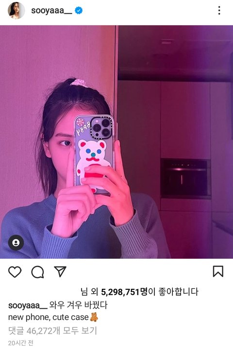 지수가 자기 인스타그램에 곰이 그려진 케이스를 핸드폰에 끼운 사진이 올라옴