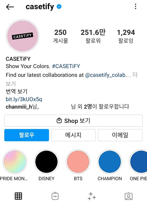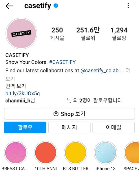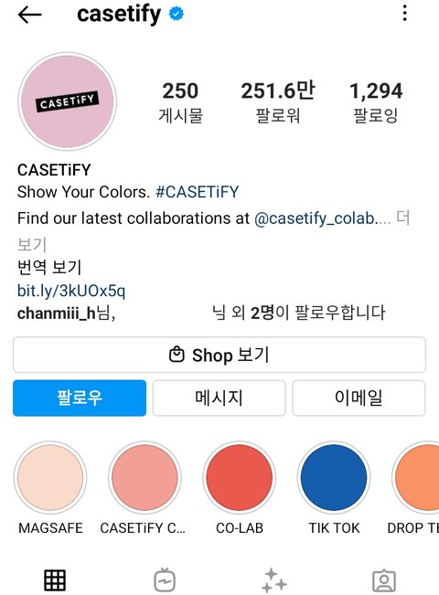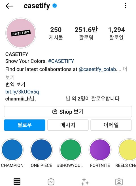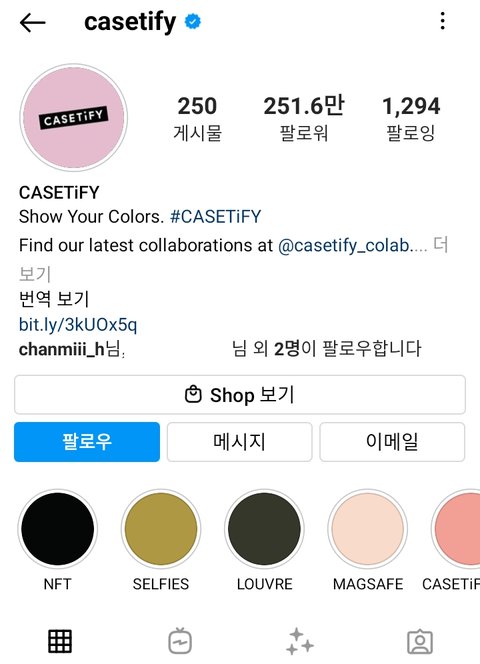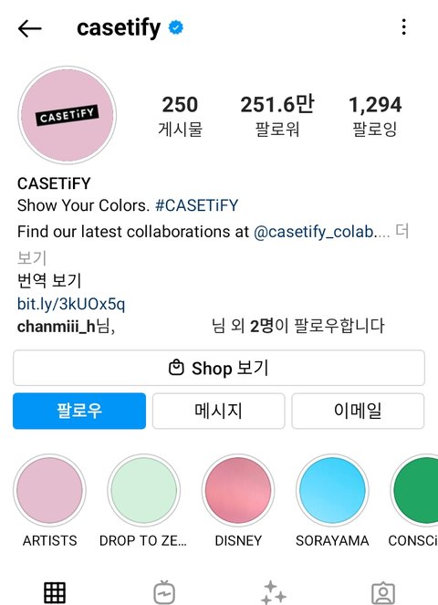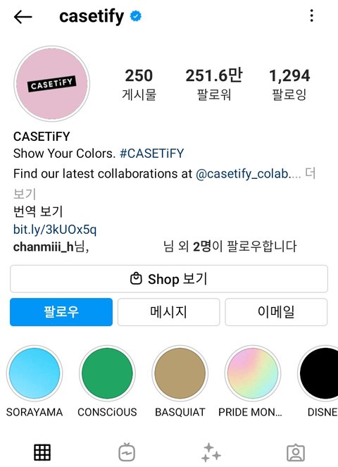 해시태그 casetify 들어가보면
