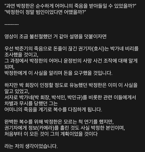 얼마전에 배드클루 뽕차서 보다가 알고리즘에 떠서 들어갔거든? 박정한 시점으로 예고편 만드신건데 걍 영화 한 편 뚝딱임,,, 진짜 소름돋아,, 근데 퀄리티에 비해 많이 모르는거 같아서 아쉬워서 올려봄 ㅠ