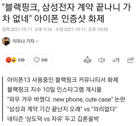 블핑은 이제 하다하다 폰 바꾼거 자랑했다고도 까이는구나 ㅋㅋㅋㅋㅋㅋㅋㅋㅋ 이건 그냥 블핑이 대단하다 그만큼 탑이라서 열폭충들한테 트집잡히는거지 뭐