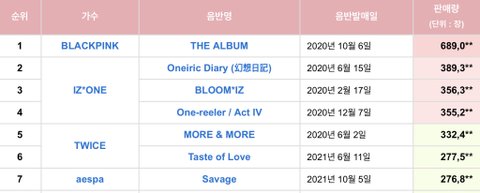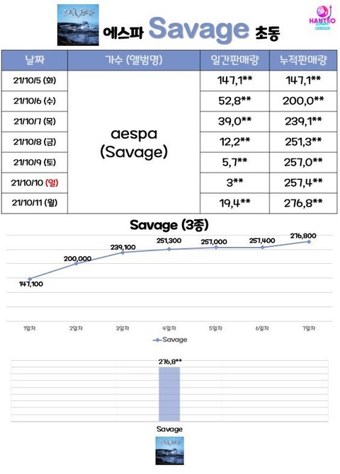 에스파 세비지 앨범 초동 역대 걸그룹 7위