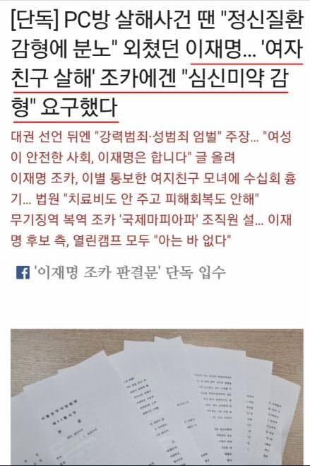 이재명, 여자친구 잔혹 살해 조카 '심신미약' 감형 주장