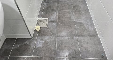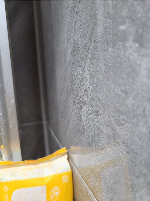 * 제일 열받아서 전화하게 만든 화장실. 타일에서 석면이 그대로 묻어나오길래 앞에 적은 불만사항과함께 클레임.하얗게 묻어나온다 청소한거 맞냐. 손사진까지 찍어보냄.
