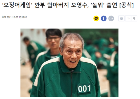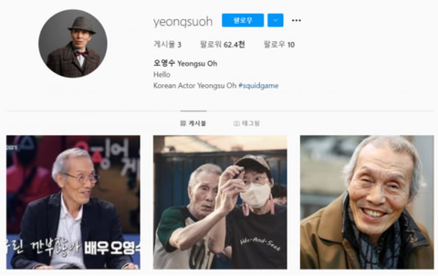 "Hello. YS Oh from Squid Game"이라고 소개한 깐부 할아버지는 '오징어 게임'을 연출한 황동혁 감독과 현장에서 포착된 모습, '놀면 뭐하니' 예고편을 캡처 사진을 올리심ㅋ