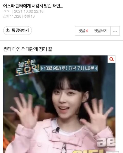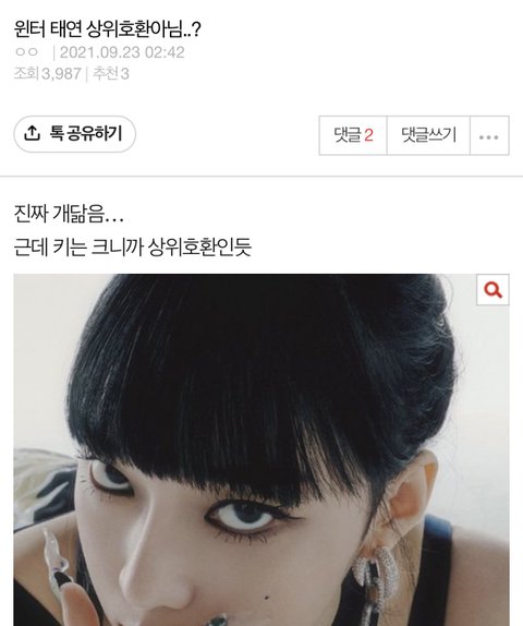 정작 마이들은 “태연이 에스파 잘나가니 붙어먹는다”, “태연이