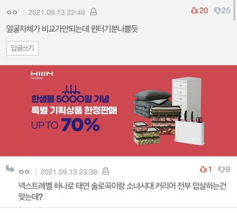 혹인 더 나아가서 인신공격은 물론 태연 동생까지 끌고와서 까는 모습을 보여줌
