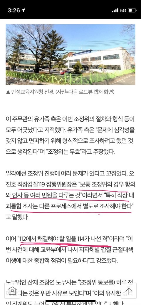 안녕하세요. 저는 갑질과 직장내따돌림으로 돌아가신 안성교육청 소속 故이** 주무관님의 딸입니다.