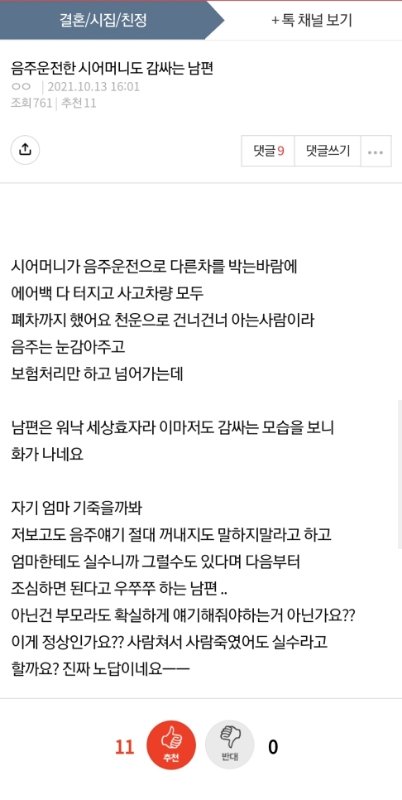 [원본지킴이]음주운전한시모 감싸는남편