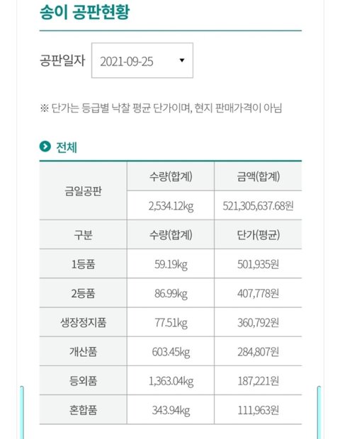 송이는 크면 클수록 등급이 높고 비싸다고함