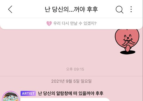 현생때문에 버블만 잠깐 끊어뒀다가 오랜만에 생각나서 들어가봤는데 재미니 닉네임 줄여진거 보고 설레서 다시 갈기고 싶어짐.. 금단현상 왔어.. 설레네 난 당신의꺼래 ><
