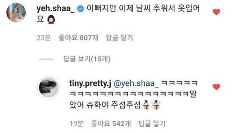 민니 인스타에 댓글 남김