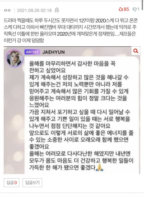 톡선 에스엠 버블글 댓글에 재현 얘기도 없는데 재현얘기 쳐넣고 재현은 잘보내는애로 만들었다고 또 팬탓까지 해가며 아이돌 까네..