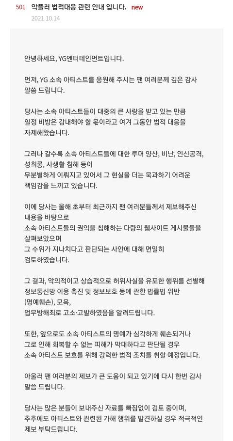 YG 팬톡 규칙 (210728 ver)