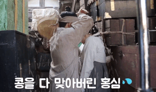 떨어지는 콩 안 맞게 홍심이 머리 감싸 안는 원득이