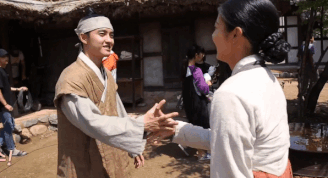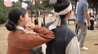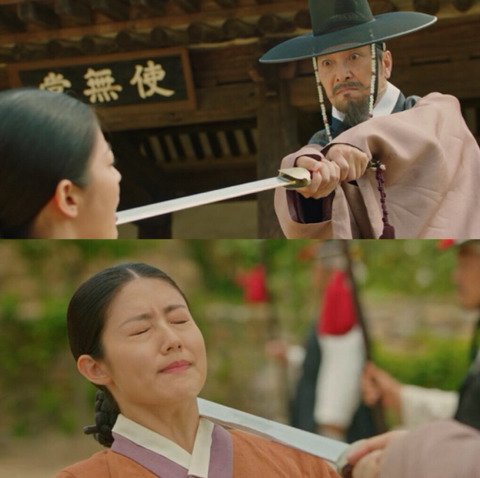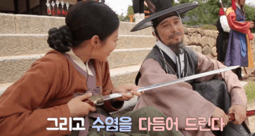 박력 있게 저고리 고름을 푸르는 원득이