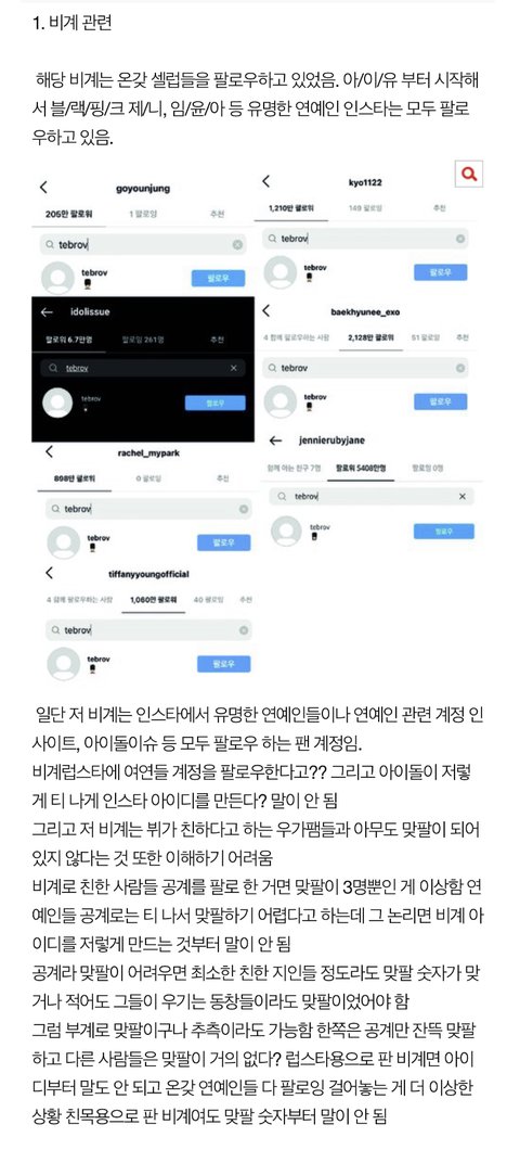 거기에 사생계정도 팔로되어잇었다고 ㅠㅠ 뷔가 왜 사생계정을 팔로하냐고오 그냥 그 계정주가 뷔 팬이면서 그분 지인이라는 생각은 하기가 시른고야? 제발 남의판 일에 신경꺼 ㅠㅠㅠㅜ 계속 끌올하지말고ㅜ