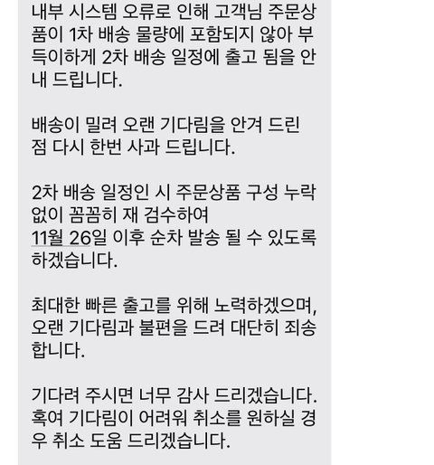 나는 내 시간하고 돈 내서 1차 배송기간에 주문한건데 쟤네 잘못으로 인해서 생각도 못한 2차배송기간에 받아야 하잖아