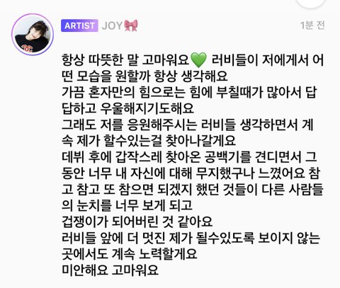 진짜 조이가 소통 안해서 팬게 맞을까?댓글에 악개잔치던데..