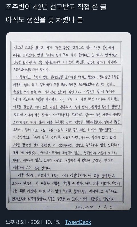 ㅅㄷ 조주빈이 42년 선고받고 쓴 글이래